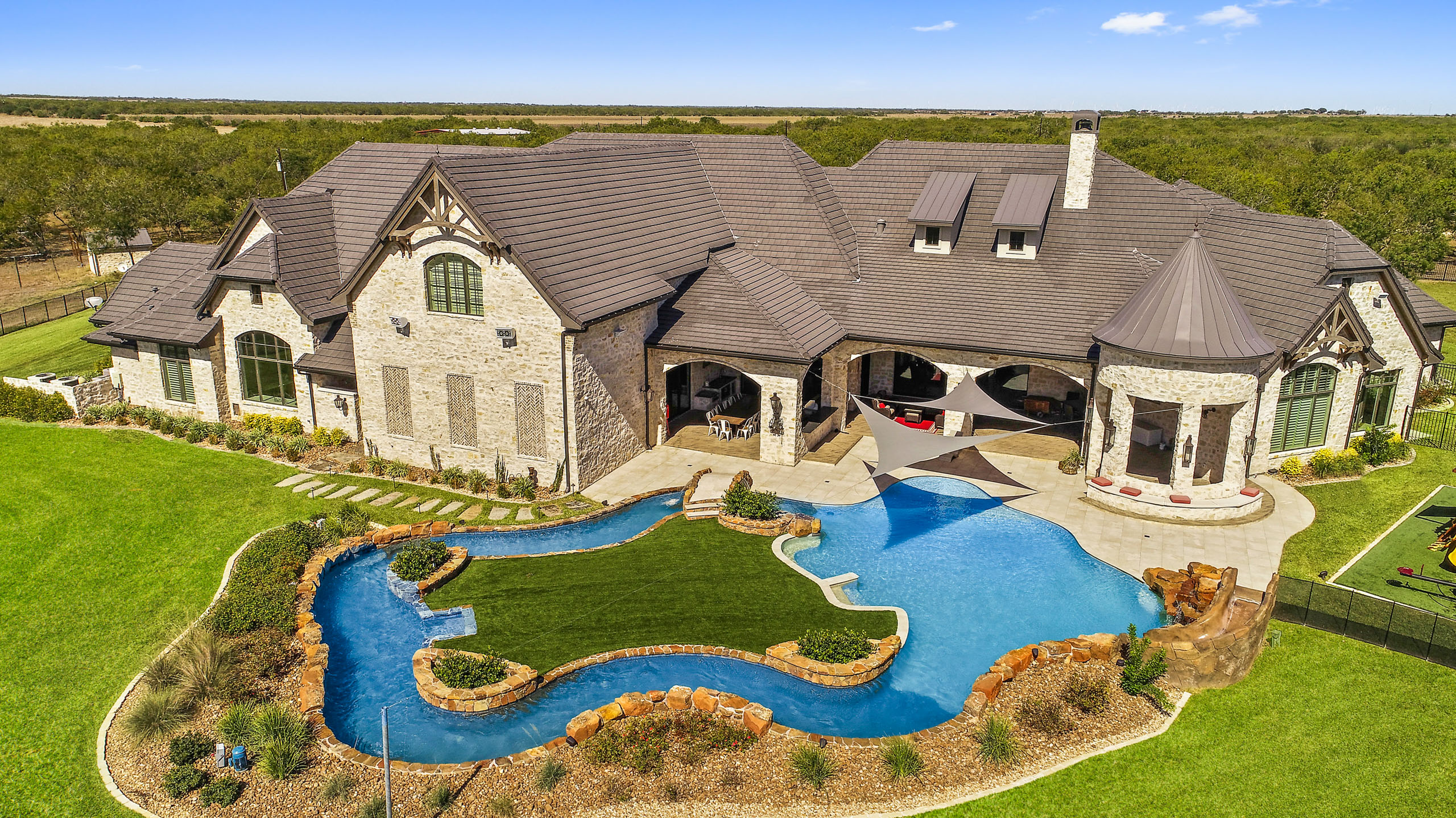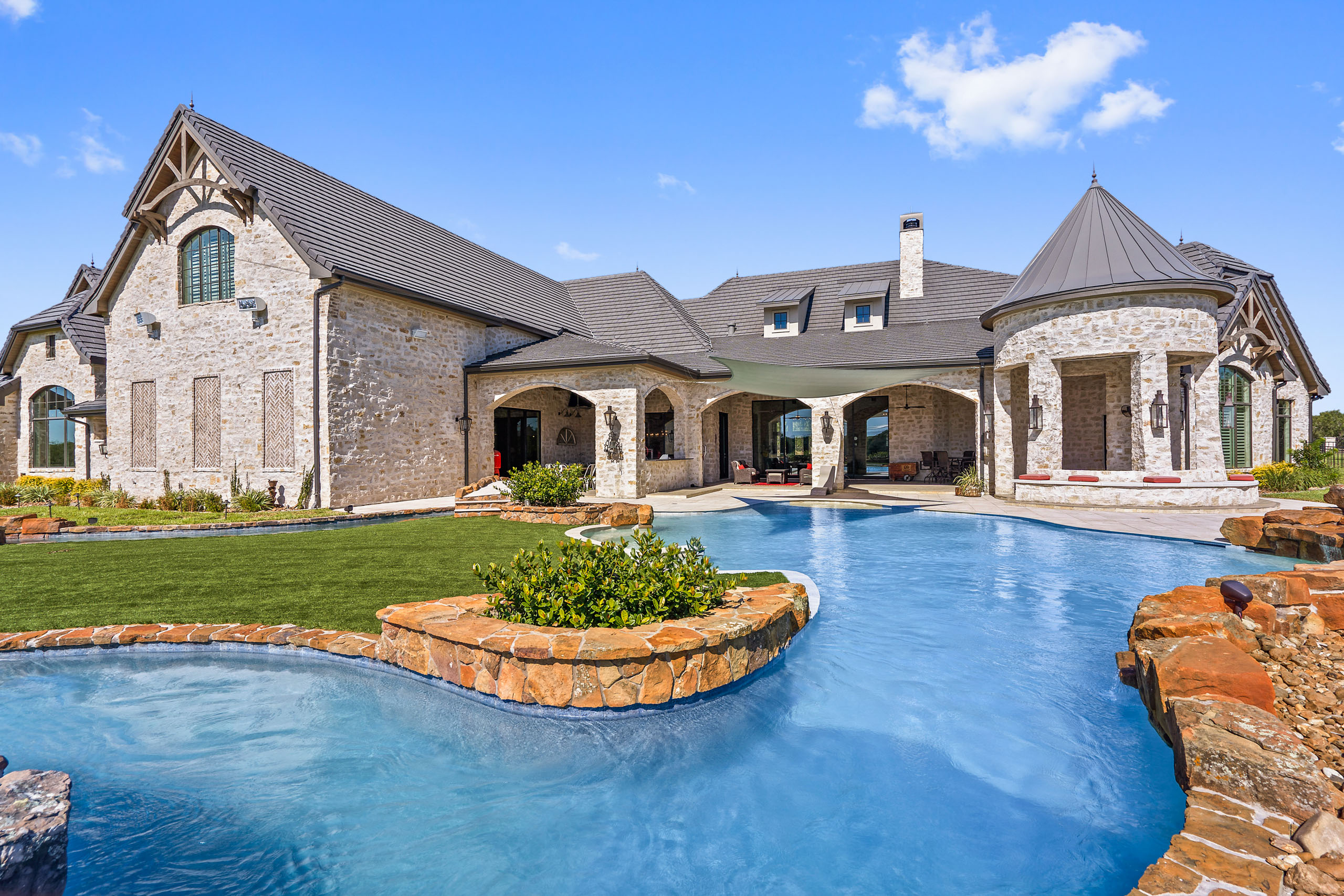 Inspired by timeless European elegance, this Country French Tudor home brings old-world charm to the Texas coast. Steep rooflines, rich textures, and artisan details create a sense of storybook romance, while modern amenities ensure comfort and livability for today’s lifestyle. Set in the heart of Corpus Christi, the residence is a rare blend of architectural tradition and coastal sophistication, offering a home as distinctive as its surroundings.