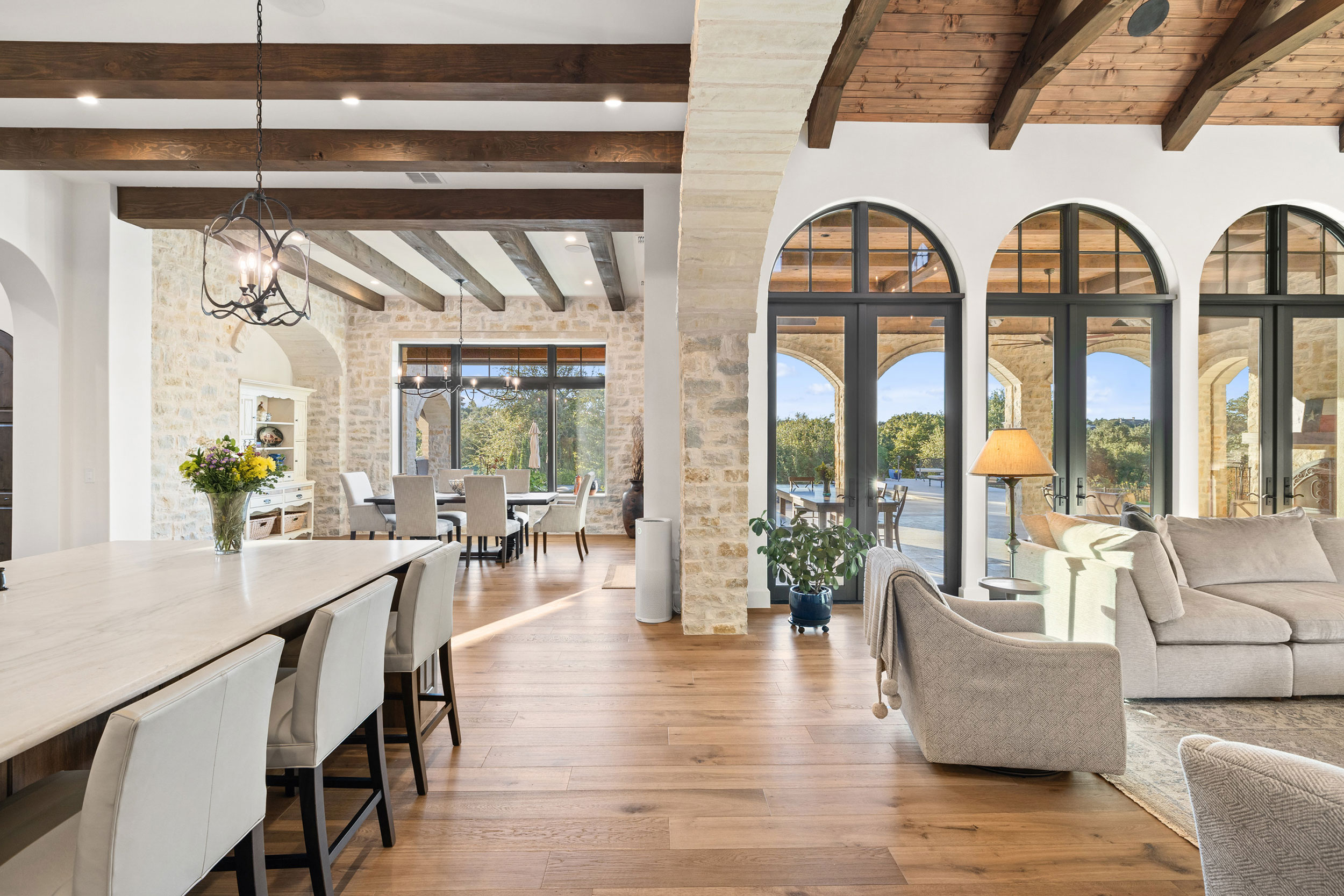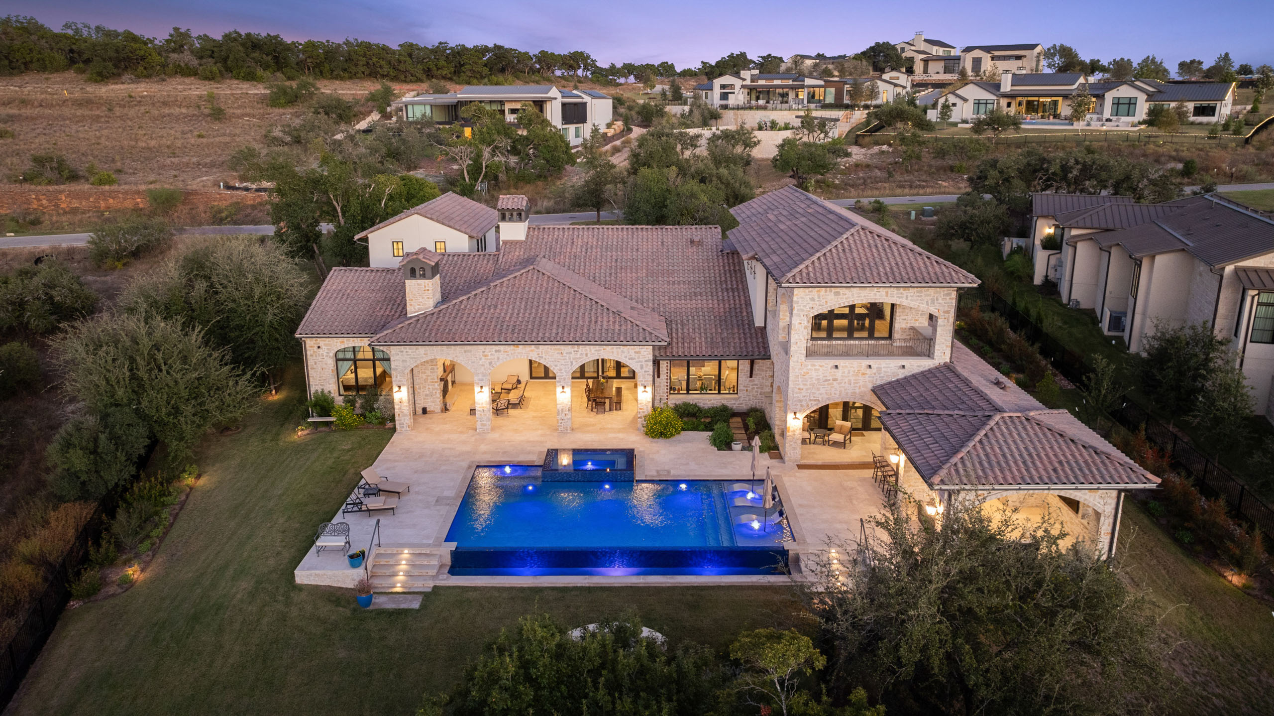 Tucked within the scenic beauty of Spanish Oaks, this custom home captures the essence of modern Hill Country elegance. Clean architectural lines meet warm, natural materials to create a space that feels both sophisticated and grounded. Designed for effortless living, it reflects a seamless harmony between craftsmanship, comfort, and the tranquil landscape that surrounds it.